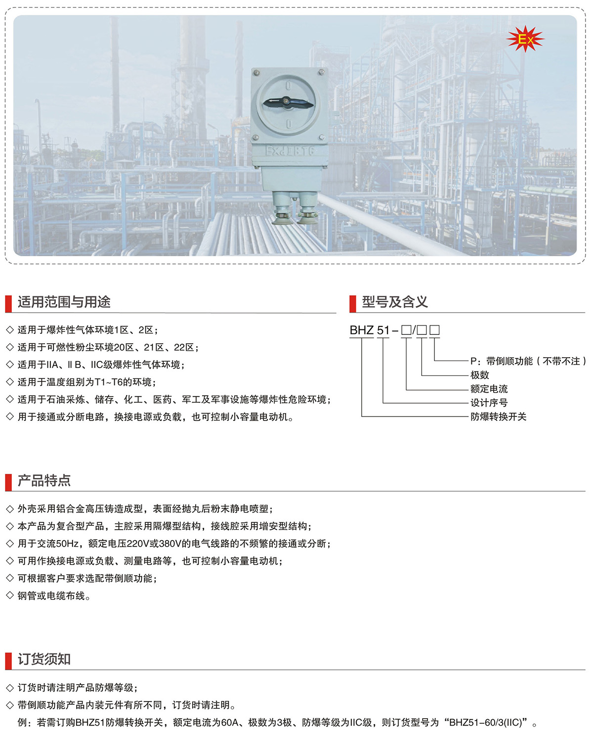 BHZ51系列防爆转换开关(IIB、IIC、Ex tD)