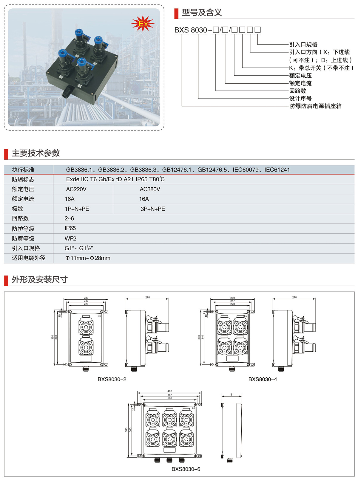 BXS8030系列防爆防腐电源插座箱(IIC、Ex tD)