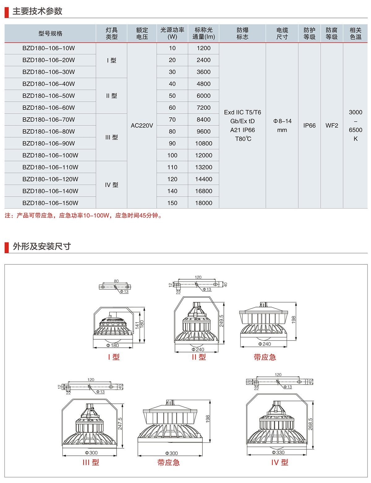 BZD180-106系列防爆免维护LED照明灯(IIC)