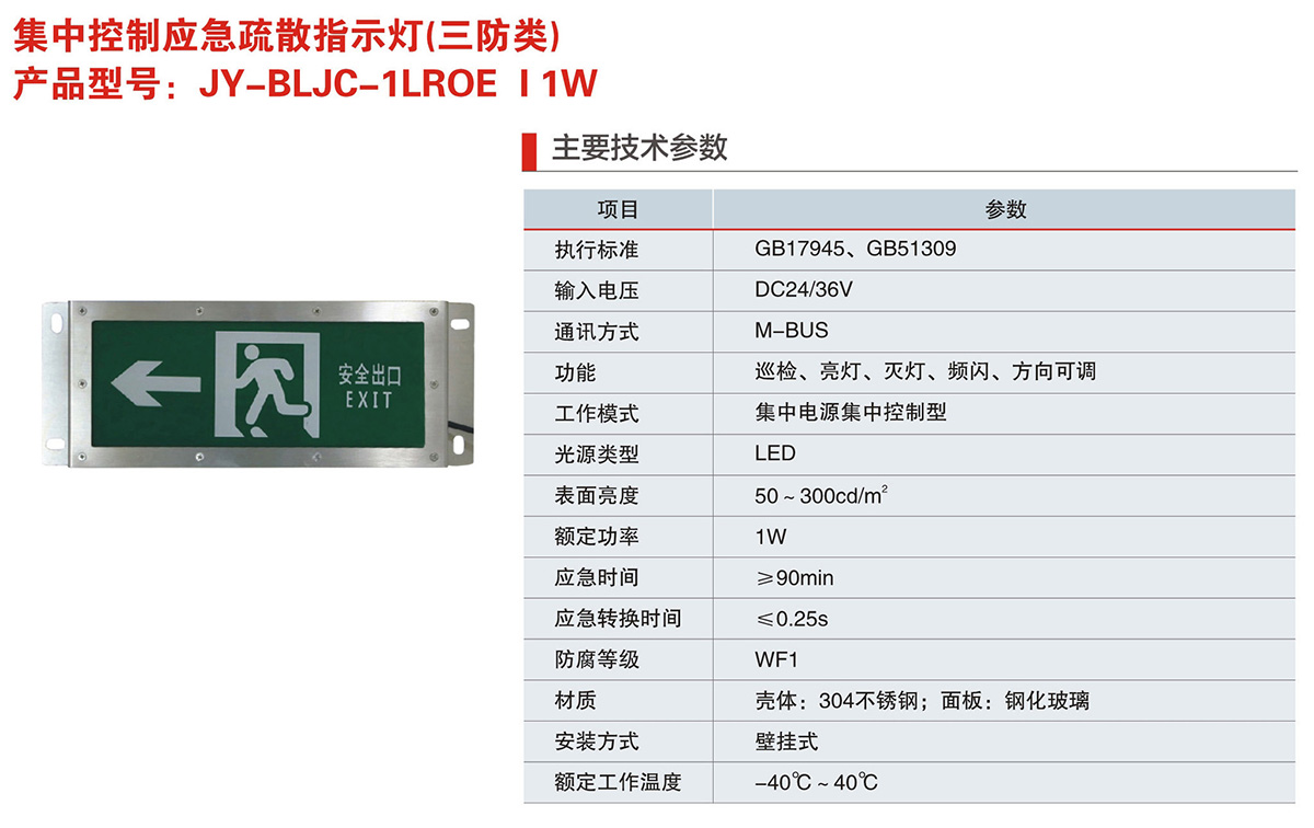JY-BLJC-1LROE I 1W系列集中控制应急疏散指示灯(三防类)