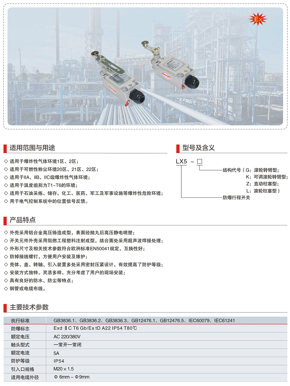 LX5系列防爆行程开关(IIC、Ex tD)