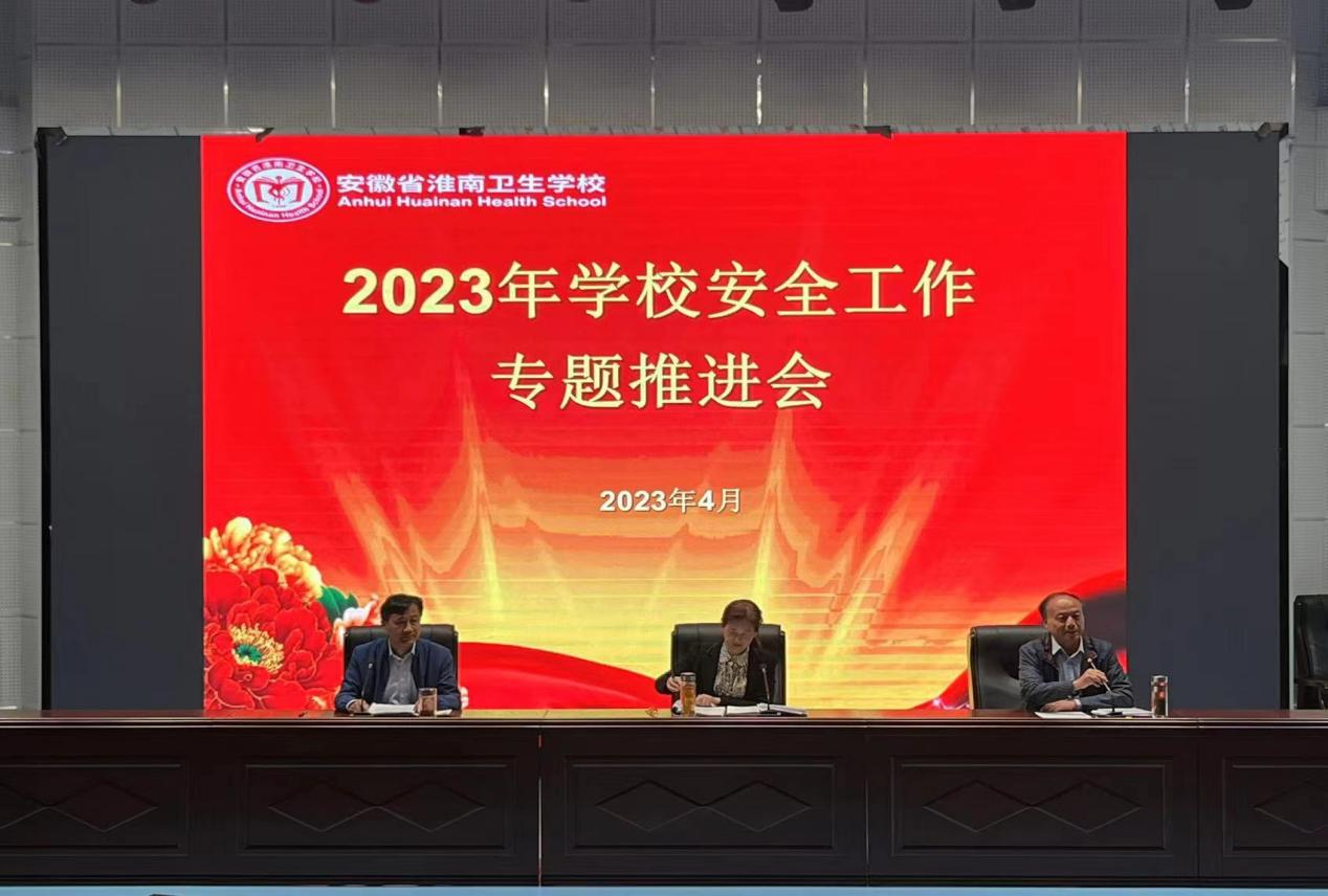 根据省市学校安全工作部署,为切实维护校园安全与稳定,筑牢校园安全屏障,4月21日下午,淮南卫校召开了2023年学校安全工作专题推进会,对我校各项安全工作进行再强调、再安排、再部署。校党委书记孙娟,副校长沈安庆、栾振知出席会议并讲话,全体教职工共计150余人参加会议,会议由沈安庆主持。