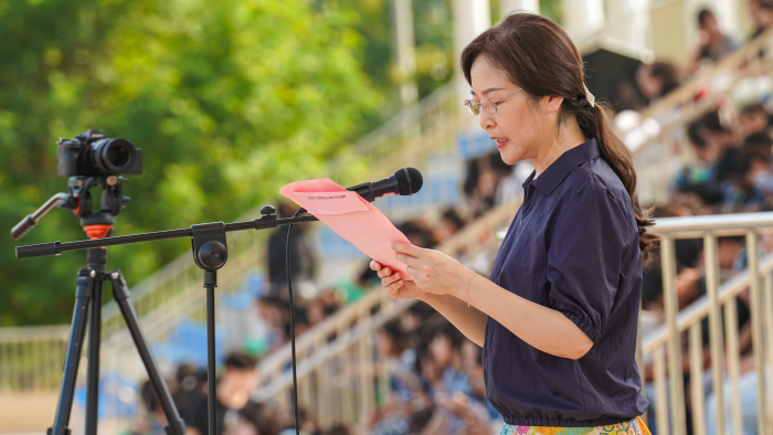 随后,校党委书记孙娟发表讲话。她首先对圆满完成军训任务的全体新生表示热烈祝贺,向全程陪伴、悉心指导的教官们致以诚挚感谢,并高度肯定了新生们在军训中的成长:“七天里,你们褪去稚气、收获坚毅,从‘稍息立正’的生疏到‘步伐一致’的默契,从个人散漫到团队凝聚,这份蜕变,正是军训赋予你们的珍贵礼物。”在肯定军训成果的同时,孙娟书记向全体新生提出三点期望:一是让 “军训作风” 扎根课堂、融入专业。医学工作不容丝毫马虎,要像排练军训队列那样,一步步,步伐坚定,刻苦学习知识、练就技能,用 “军训式严谨” 筑牢专业基础,不辜负学校的优质教学资源。二是让 “良好习惯” 贯穿生活、对接职业。未来的健康守护者,首先要做健康的践行者,如今养成的良好习惯,正是未来胜任岗位的基础。三是让 “坚韧品格” 融入血脉、奋力拼搏。医学学习从无捷径可走,遇到知识难关时,要主动向老师请教;技能操作不熟练时,就利用实训设备反复打磨、精益求精,以坚韧意志攻克学习路上的每一道难题。