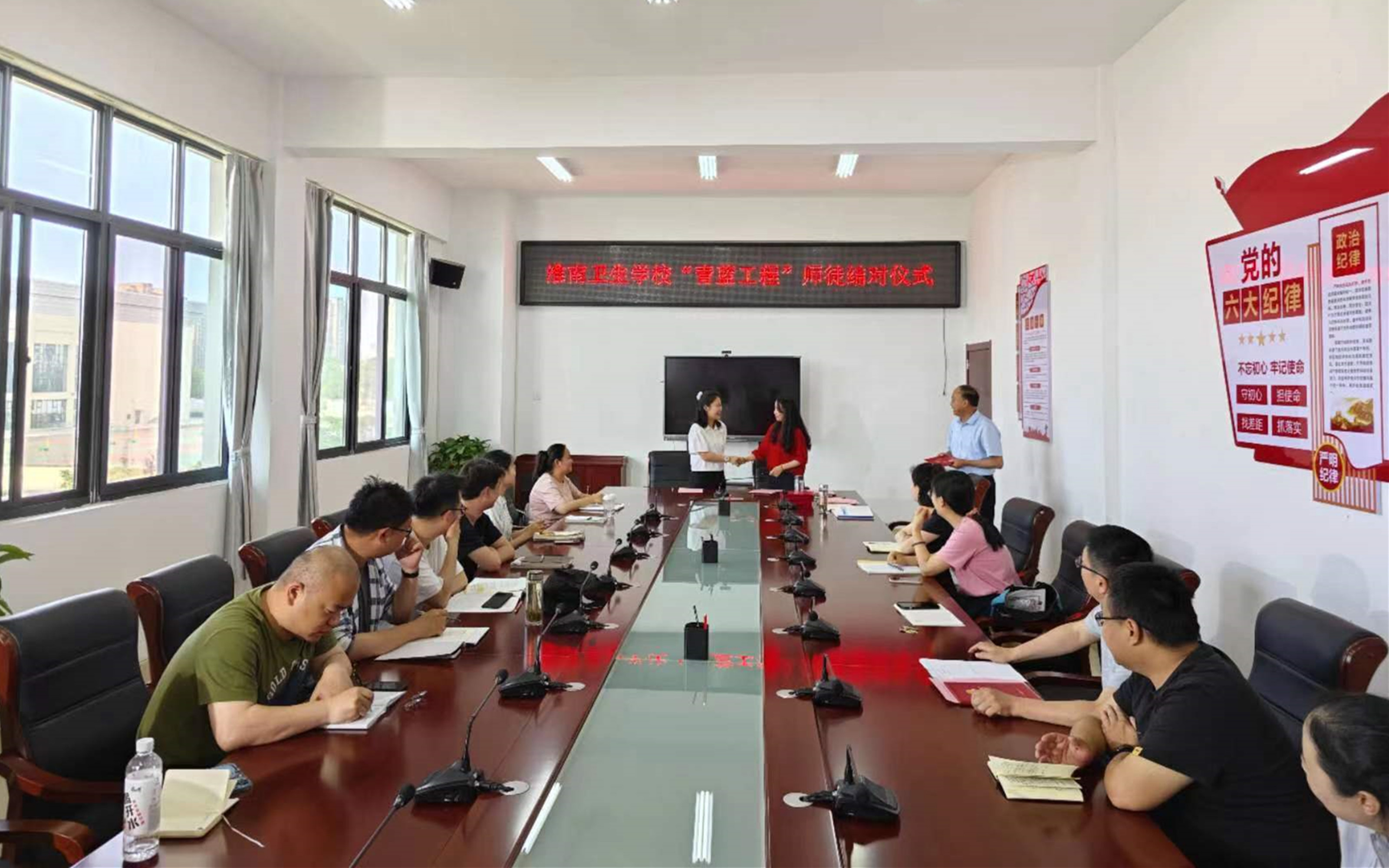 为充分发挥优秀骨干教师的示范引领作用,帮助新教师掌握先进的教学理念和教学方法,促进青年教师快速成长,2023年5月19日下午,我校在明德楼三楼会议室举行“青蓝工程”新老教师师徒结对仪式。教务科科长陈瑜主持仪式,学校党委委员、副校长沈安庆出席仪式。