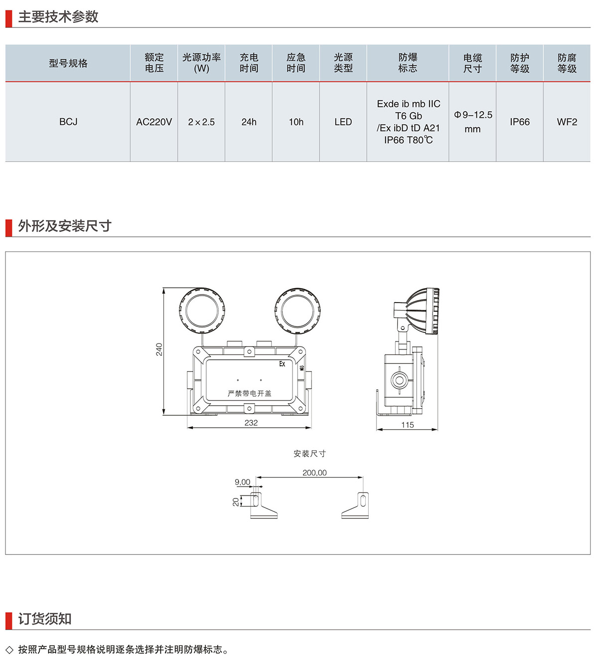 BCJ系列防爆消防应急双头照明灯具(IIC)