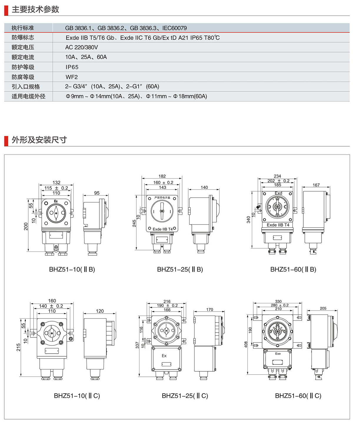 BHZ51系列防爆转换开关(IIB、IIC、Ex tD)