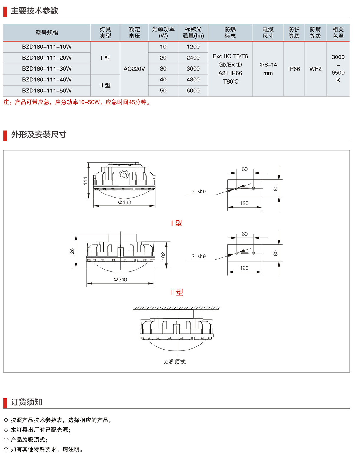 BZD180-111系列防爆免维护LED照明灯(IIC)