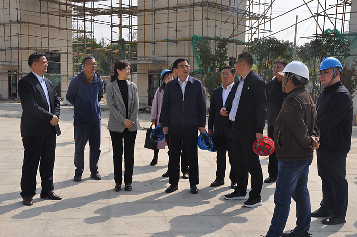 座谈会结束后,汪谦慎一行前往淮南卫校山南职教园区新校区建设工地进行现场调研。