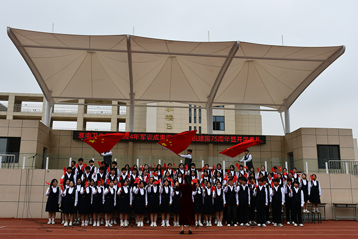 为隆重庆祝中华人民共和国成立75周年,激发全校师生爱国情怀,唱响奋进新时代的主旋律,9 月 30 日,淮南卫生学校举办庆祝中华人民共和国成立75周年活动。校园内处处洋溢着喜庆的氛围。 “热烈庆祝中华人民共和国成立 75 周年”等标语在校园里鲜艳夺目,为整个校园营造出浓厚的节日氛围。
