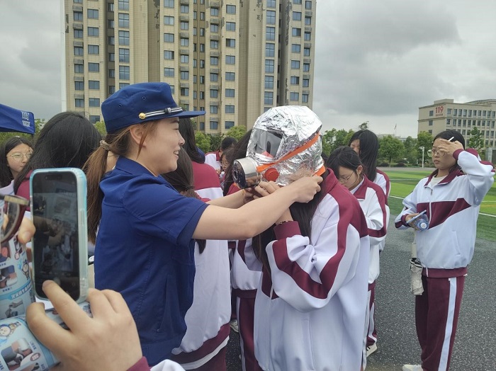 2025年5月9日上午,我校220名师生受邀参加在山南新区消防支队举办的全省消防救援队伍地震救援跨区域实战拉动演练暨淮南市第五届消防行业职业技能竞赛。在活动现场,有专职消防员现场为学生讲解灭火器的颜色分类及使用说明,防毒面具的使用方法等诸多专业消防知识,使师生们进一步增强了防灾减灾意识,提升了应对地震等灾害的应急处置能力。