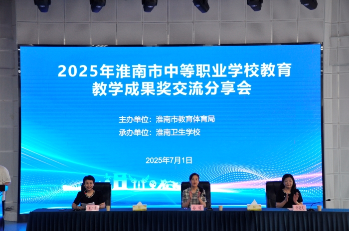 为深入推广全市中职教育优秀教学成果,促进经验交流与互学互鉴,7月1日,由淮南市教育体育局主办、淮南卫生学校承办的“2025年淮南市中等职业学校教育教学成果奖交流分享会”在淮南卫生学校活动中心成功举办。本次会议旨在搭建交流平台,推广优秀教育教学经验,助推全市中职教育高质量发展。来自全市13所中职学校的分管校领导、教务(研)处负责人、骨干教师,全市兼职职教教研员,以及28项市级教学成果奖的获奖代表等共计120余人参加了会议。会议由市职教教研室教研员朱广秀主持。