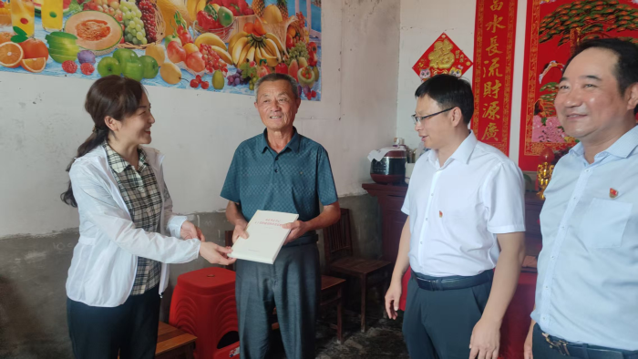 孙娟书记一行来到洪楼村退休老党员家中,将《习近平关于加强党的作风建设论述摘编》等学习书籍送到老党员手中,并与老党员亲切交流,感谢他们为党和乡村建设的贡献,表示学校将持续关心村里老党员的生活。