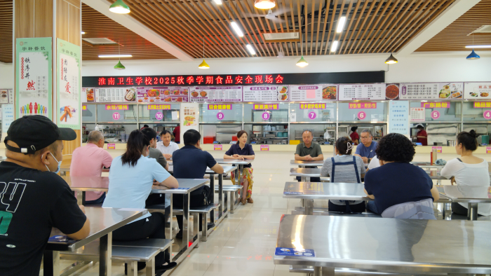 9 月 4 日,淮南卫生学校在学校食堂召开 2025 年秋季学期食品安全现场会。淮南联大党委委员、校党委书记孙娟,校党委委员、副校长沈安庆、校党委委员、副校长栾振知以及相关职能科室负责人参会。会议以 “筑牢校园饮食安全防线” 为重点,结合开学食品安全排查情况,明确秋季学期食品安全工作重点,为新学期师生的学习生活筑牢坚实的安全防线。